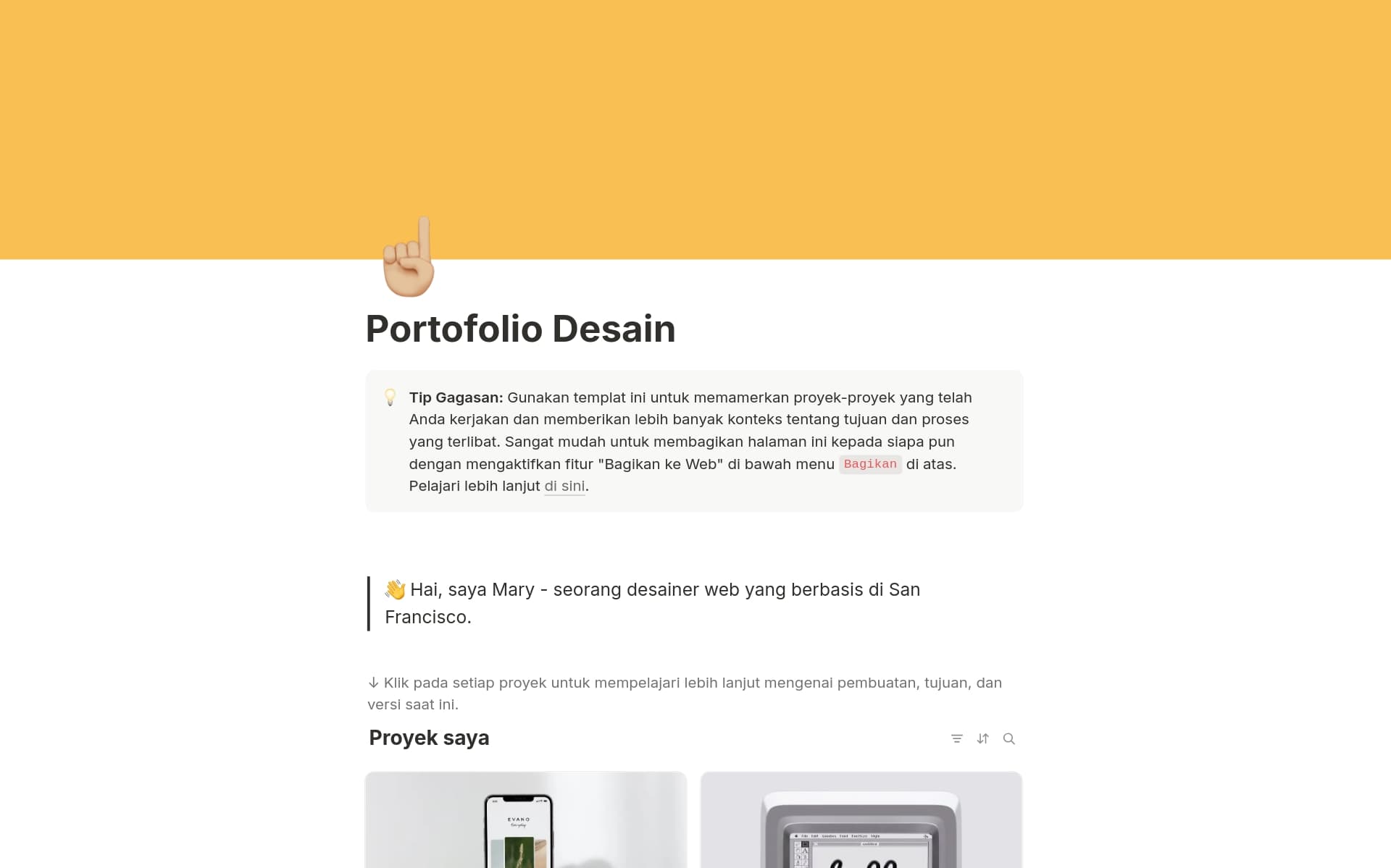 Tangkapan layar koleksi Your work on display oleh Notion