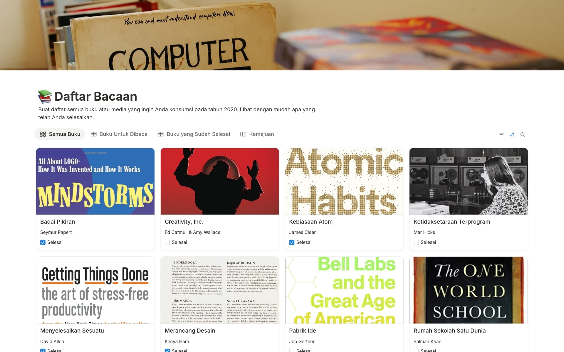 Tangkapan layar koleksi Kotak Resepmu oleh Notion